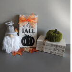 I purchased a sign from the Dollar Tree, and painted it with white paint. I then added gray lines to make it look like beadboard, and more gray around the edges and front of the sign to give it a rustic, farmhouse look.