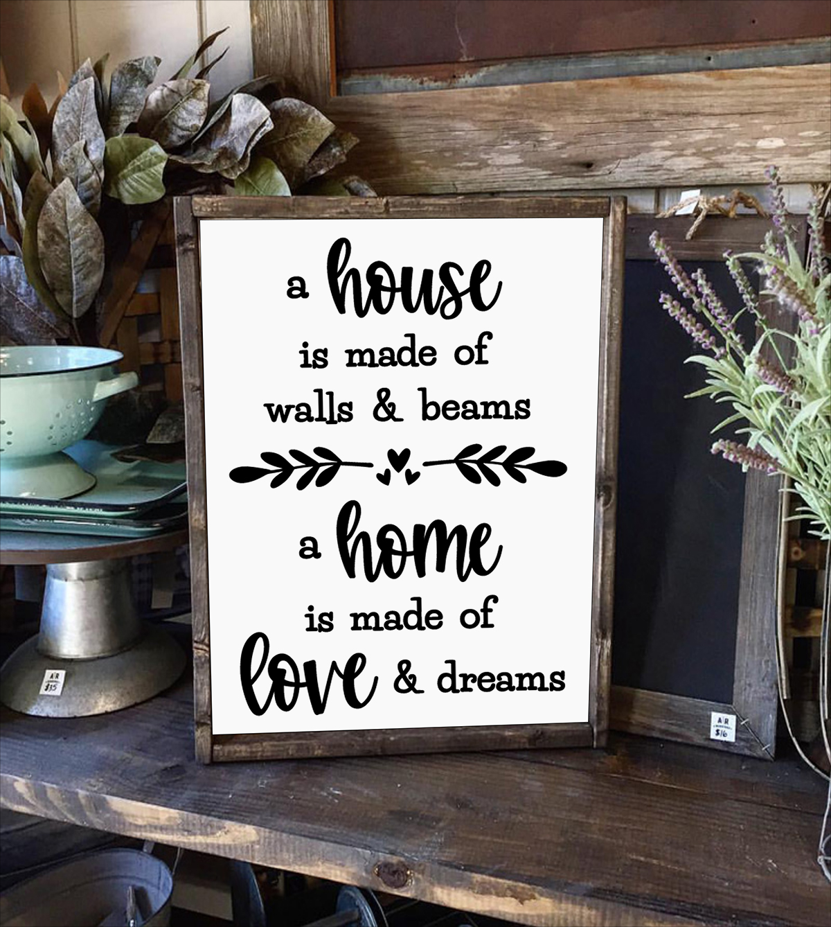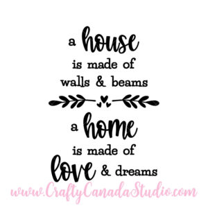 This quote, A House Is Made Of Walls And Beams A Home Is Made Of Love And Dreams, comes in SVG format.