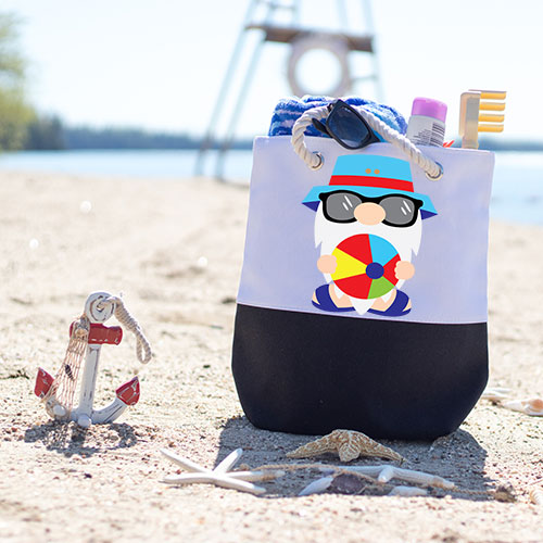 This gun little beach gnome comes in SVG format, and includes a colorful beach ball.