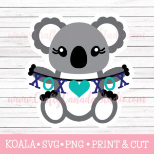 This Boy Koala Valentine’s SVG features a fun X and O banner with heart.