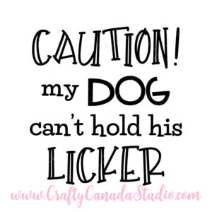 This fun pet quote, Caution! My Dog Can’t Hold His Licker, comes in SVG format.