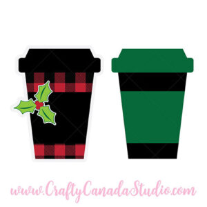 This Christmas Coffee Cup comes in SVG format, and features pretty holly leaves. Included is are PNG files of the entire cup with the holly included, as well as just the buffalo check front, for printing and cutting.