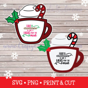 Hot Chocolate Mug SVG files, perfect for creating Christmas and winter craft projects made with the Glowforge, Xtool, and Cricut machines! Create Christmas gift tags, cards, signs, or sublimation projects with this cute hot cocoa svg, or use the text on its own without the mug to create your very own handmade project!