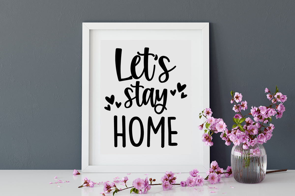 This quote, Let’s Stay Home, comes in SVG format, and features fun little hearts.
