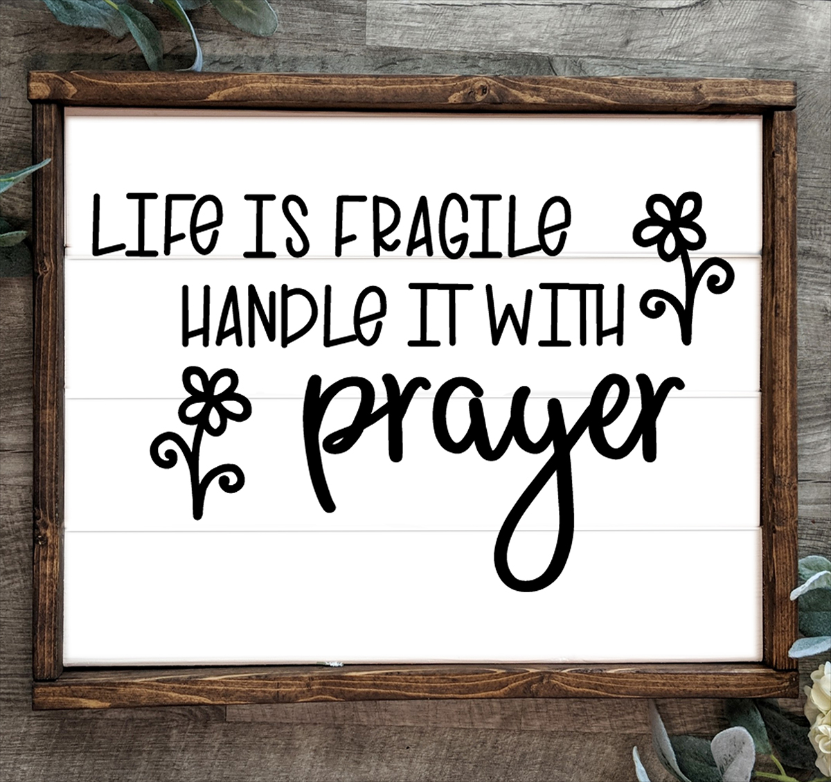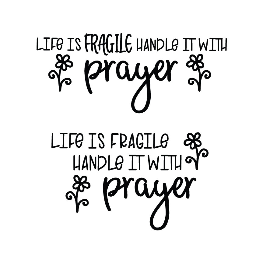 This Life Is Fragile Handle It With Prayer quote comes in SVG format, as well as two different layouts, and features pretty little flowers.
