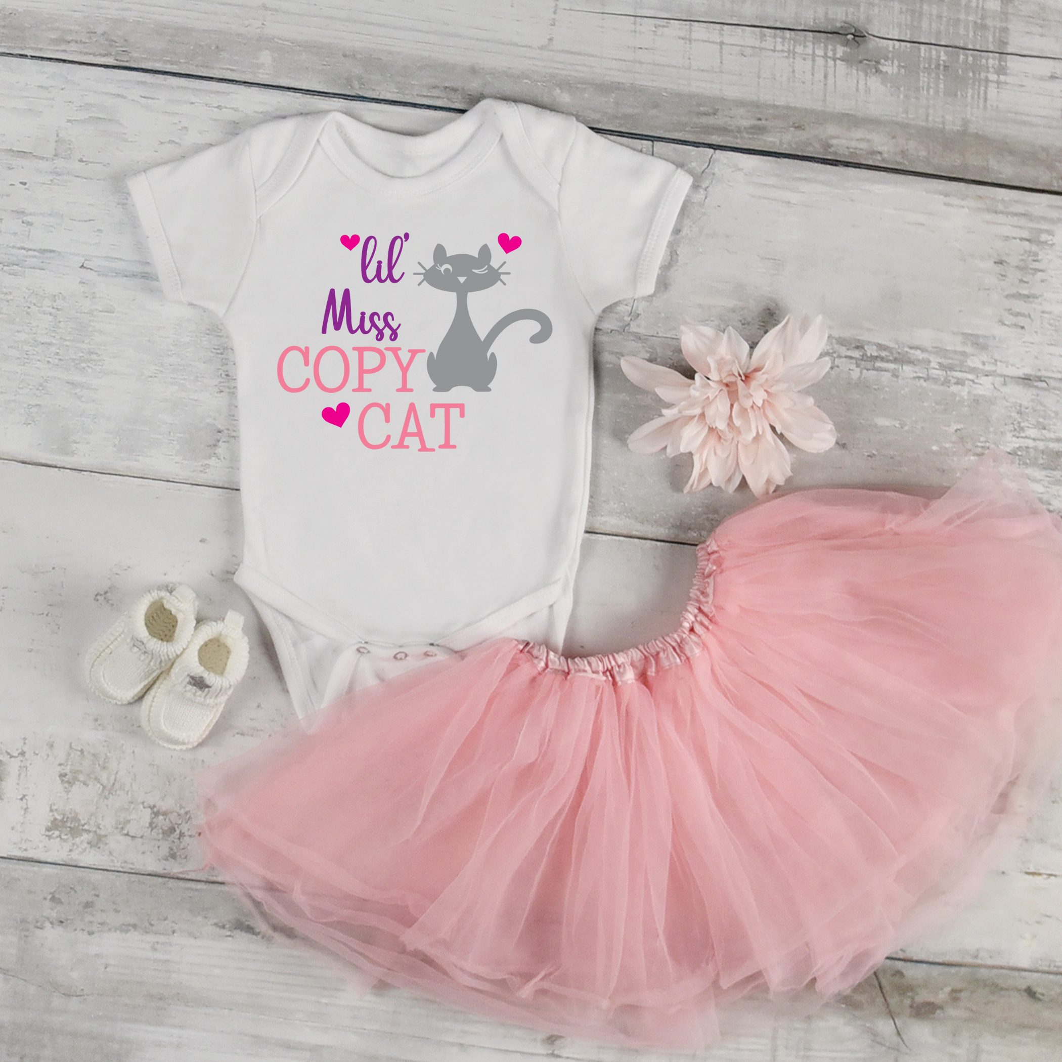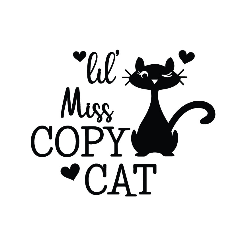This Lil’ Miss Copy Cat quote comes in SVG format, and features a cute winking cat.