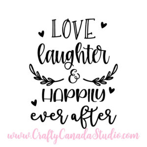 This Love Laughter And Happily Ever After quote comes in SVG format and features hearts and branches. Perfect for creating wedding announcements, thank-you cards, wedding invitations, signs, and save-the-dates!