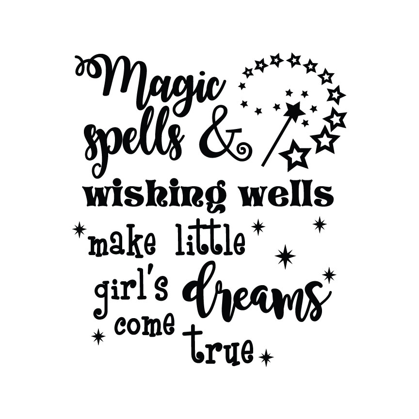 This whimsical quote, Magic Spells And Wishing Wells Make Little Girl’s Dreams Come True, comes in SVG format.