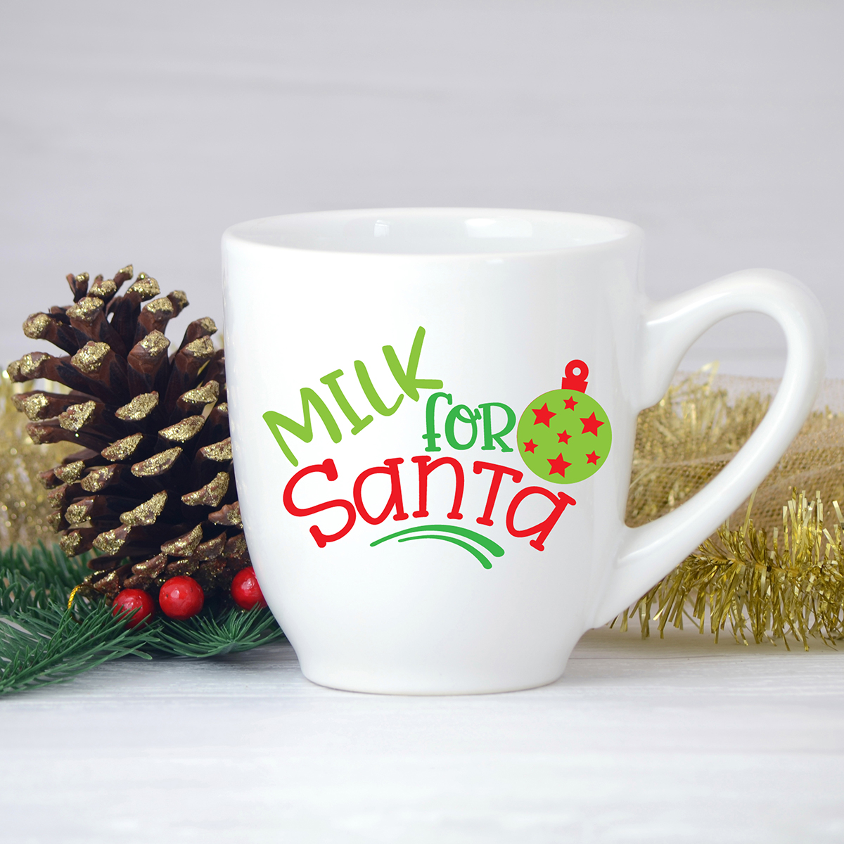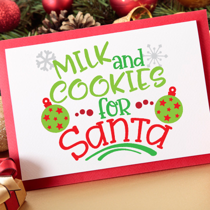 This Milk And Cookies For Santa quote comes in SVG format, and features Christmas ornaments and snowflakes.