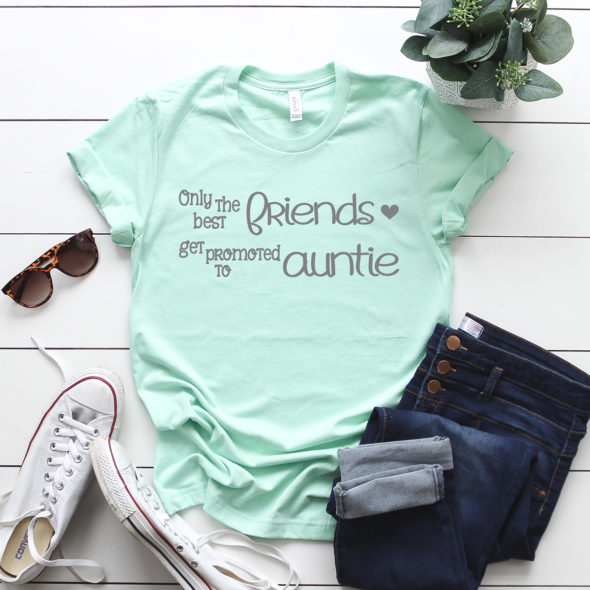 This sweet quote Only The Best Friends Get Promoted To Auntie comes in SVG format.