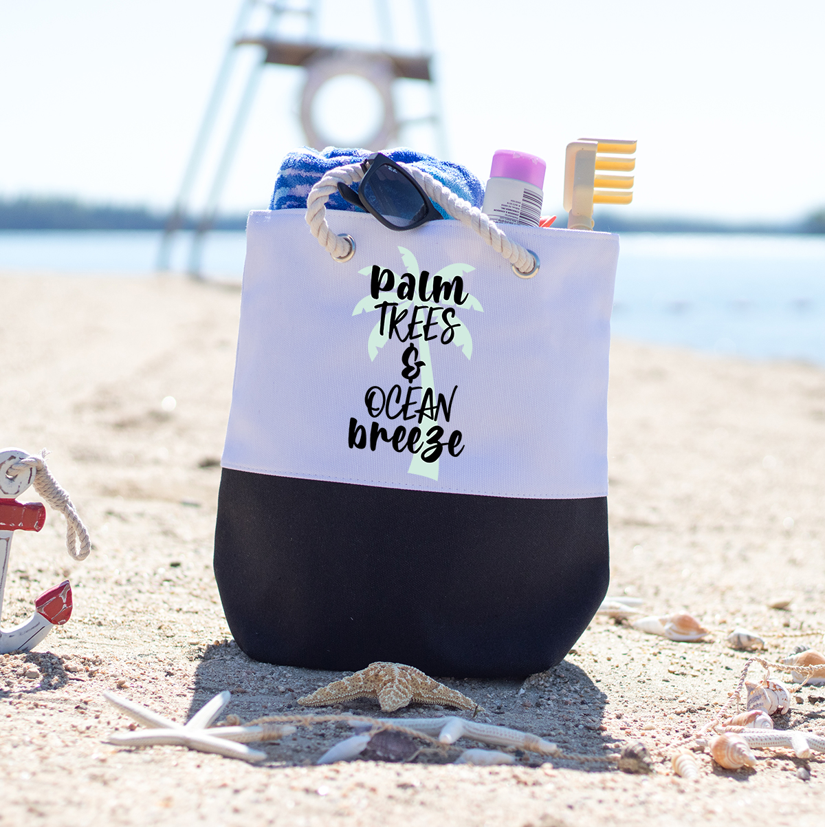 This quote, Palm Trees And Ocean Breeze, comes in SVG format, and features a tropical palm tree in the background.
