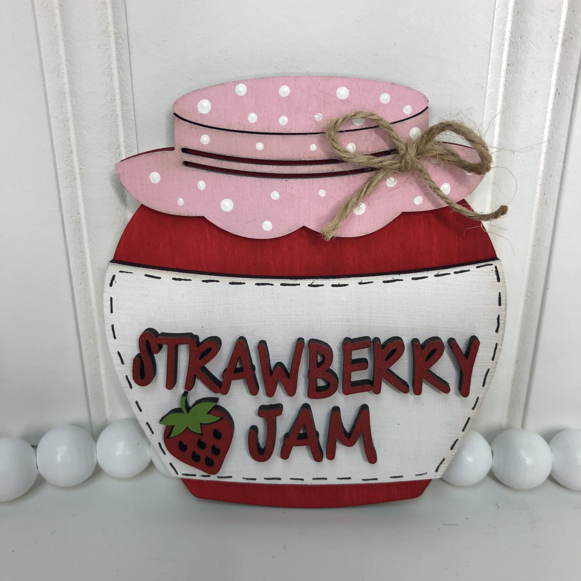 Strawberry jam SVG – perfect for creating laser cut wood products, as well decor and decorations with the Cricut. Print and cut this file to create stickers and die cuts for cards and scrapbook layouts. For use with the Cricut, Glowforge, X-tool, Silhouette Cameo, and any other machine or program that supports SVG files.