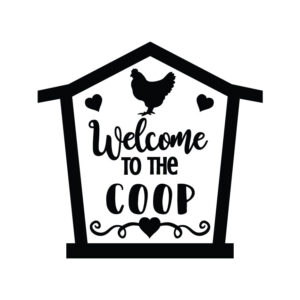 This Welcome To The Coop quote comes in SVG format, and features a bird/chicken house, hearts, and a cute little chicken.